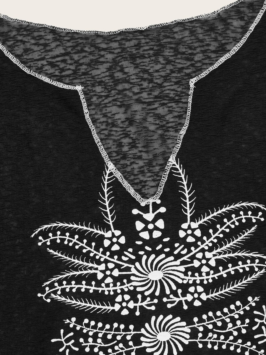 Top con estampado de dibujo de manga con volante de malla