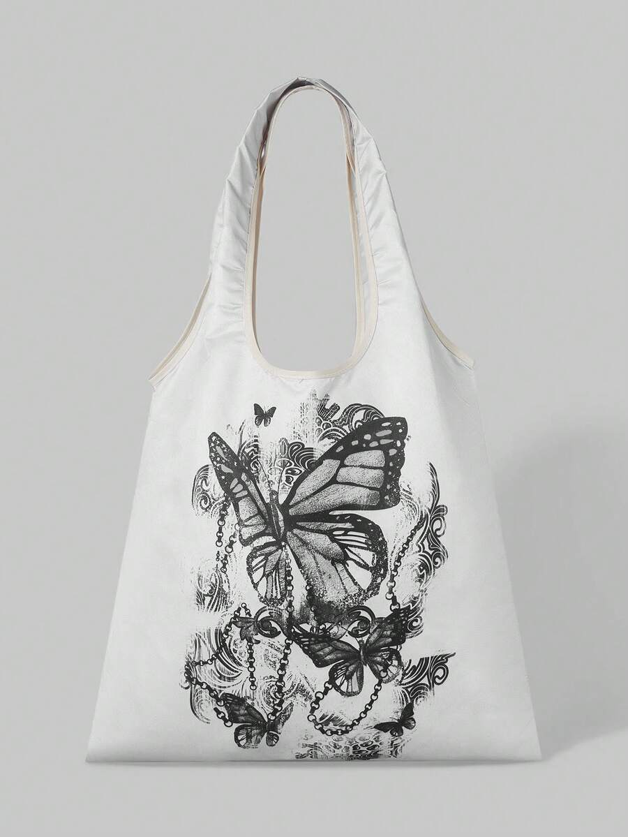 Grunge Punk Bolsa de lona gris con doble mariposa, bolsa de compras elegante y de alta gama