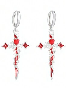 Grunge Punk 1 par de pendientes góticos con diseños de rosa, cruz y remache