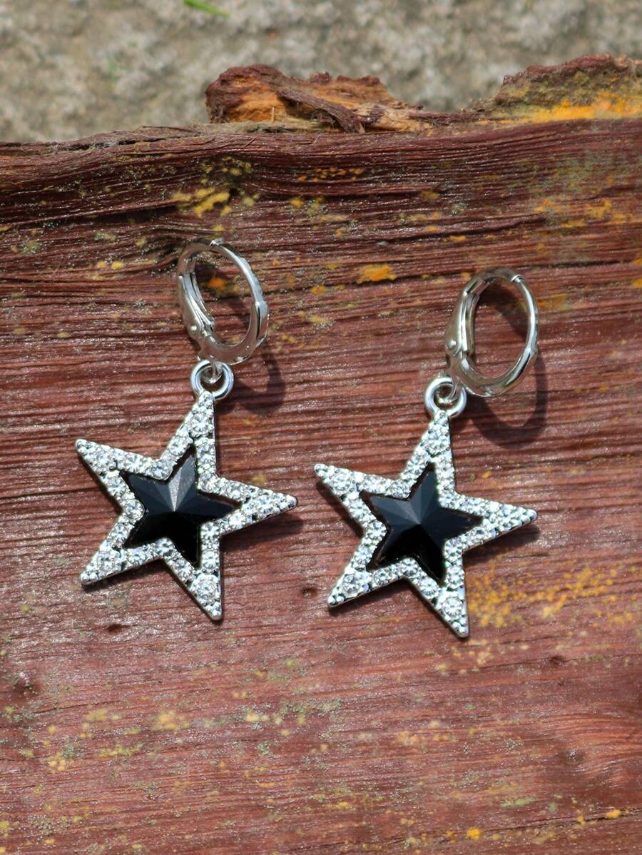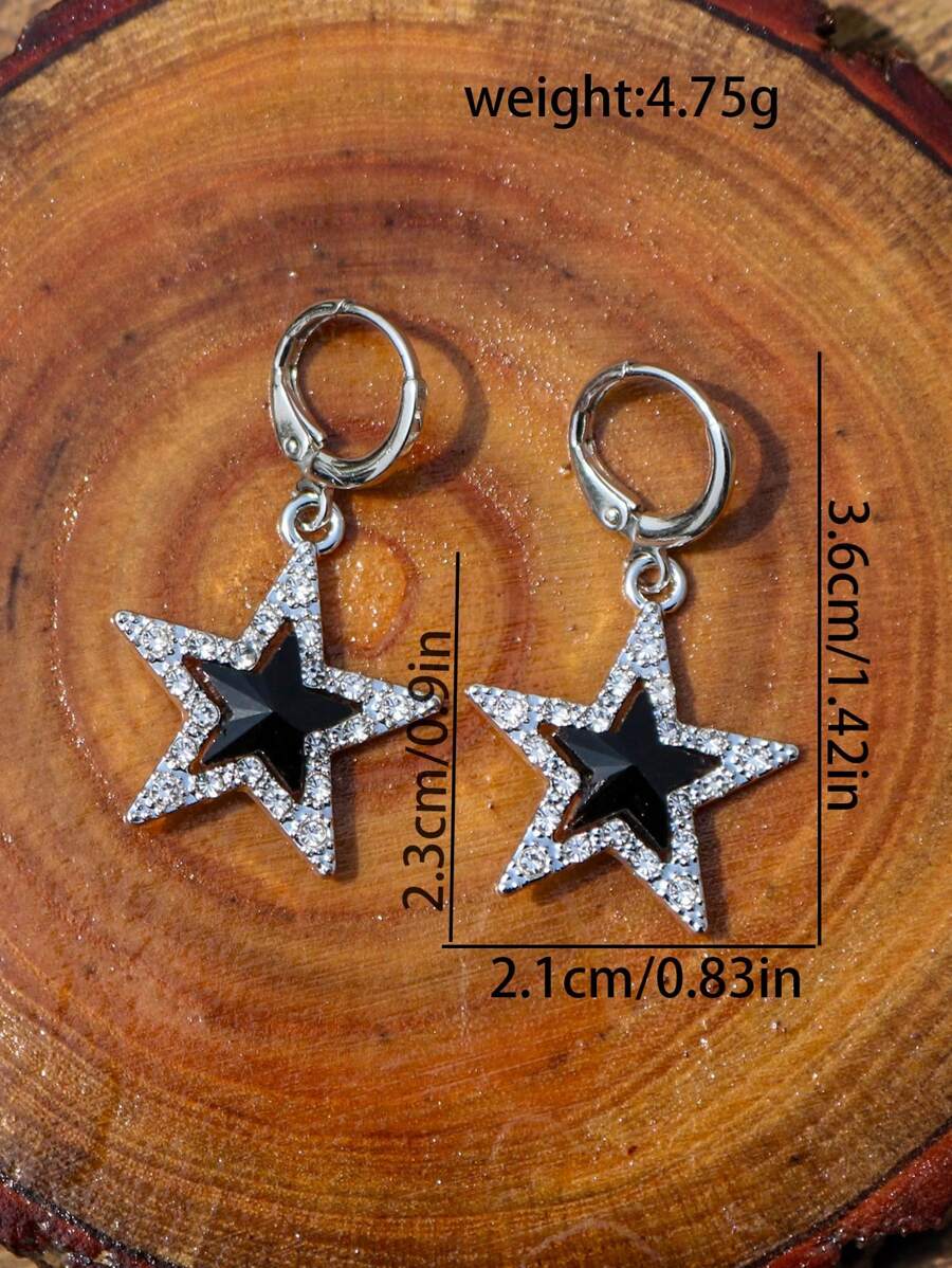 Grunge Punk 1 par Pendientes largos moda aleación de zinc con diamante de imitación con estrella para mujeres para decoración diaria