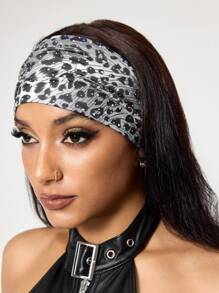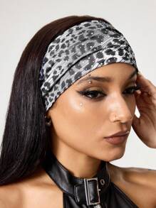 Grunge Punk 1 pieza Diadema ancha con doble láser, efecto holográfico y cristales brillantes de estilo de moda, Diadema elástica con estampado de leopardo de estilo Gyaru, accesorio diario