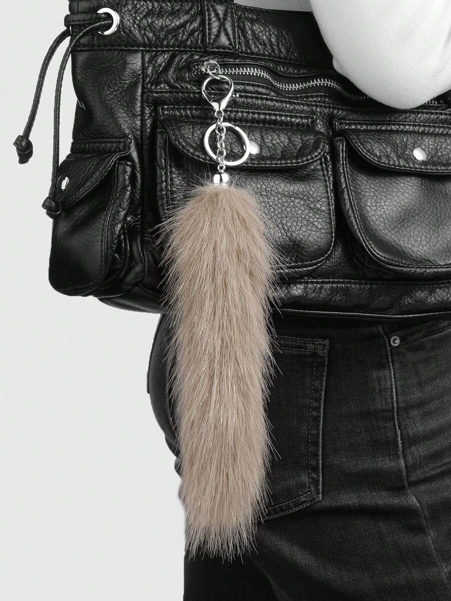 Grunge Punk 1 pieza Accesorio de moda vintage de alta calidad - Cola de animal de peluche marrón con brillo, un accesorio versátil para mujeres, un regalo ideal