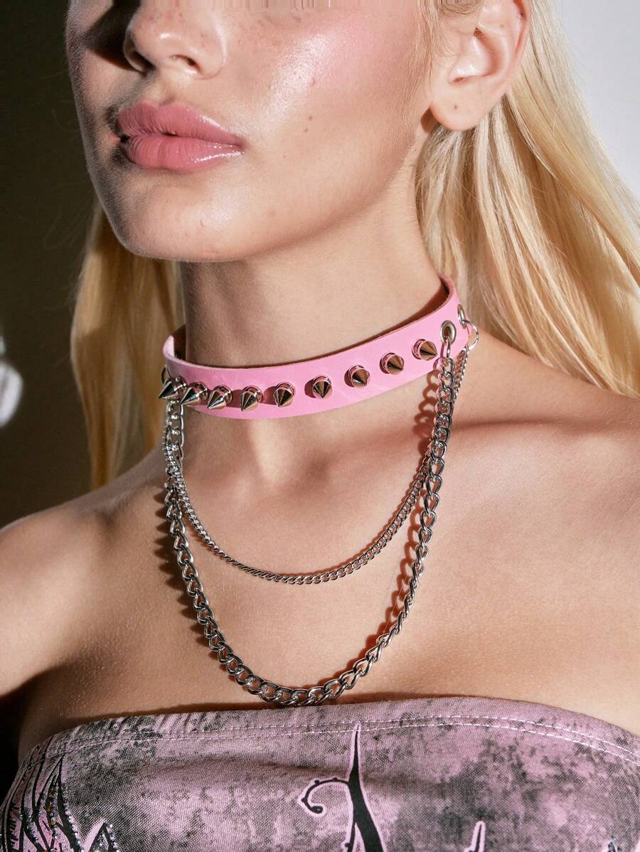 Grunge Punk 1 pieza Collar gargantilla con remaches y tachuelas, estilo punk gótico hecho a mano, collar punk de moda, para Halloween