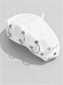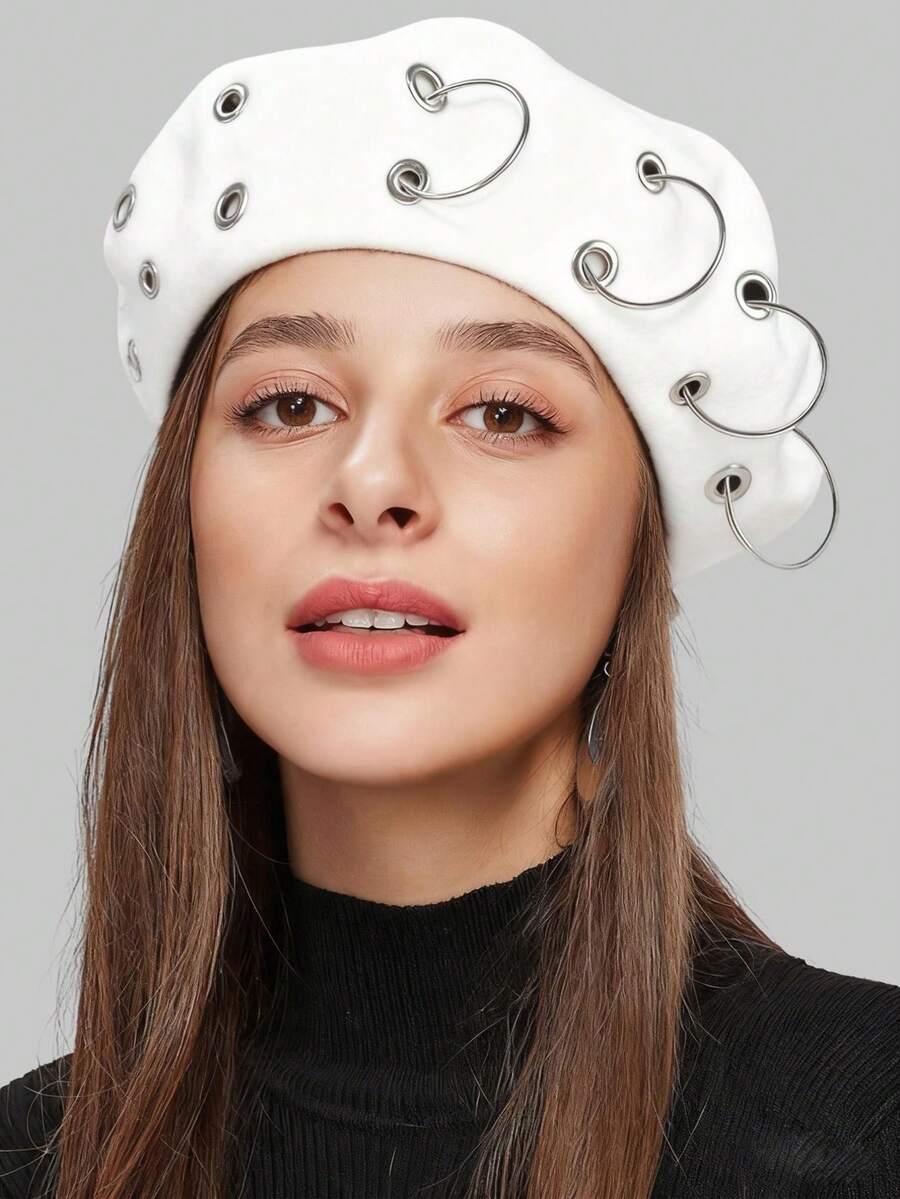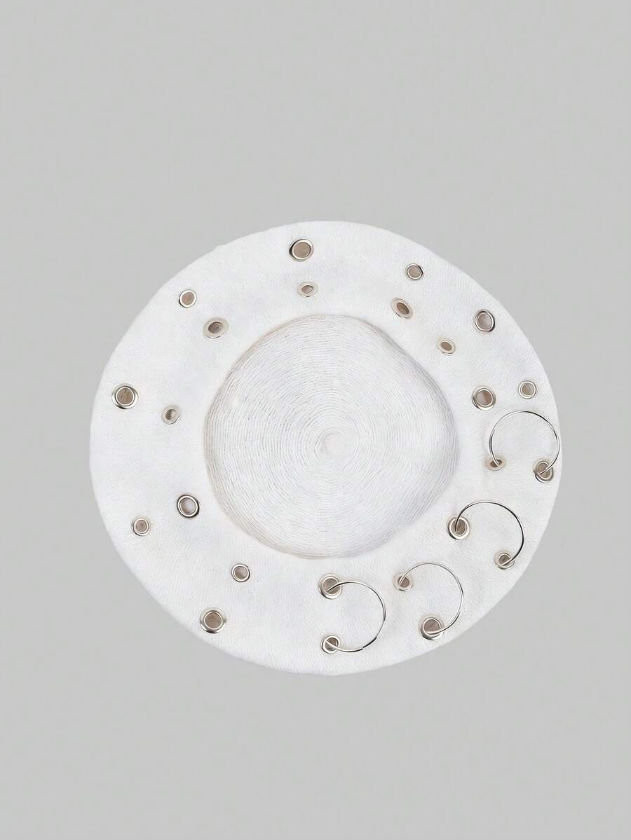 Grunge Punk 1 pieza Boina estilo punk con remaches circulares huecos, Gorra de periódico con colgante redondo Y2K, Artículo de moda personalizado para uso diario