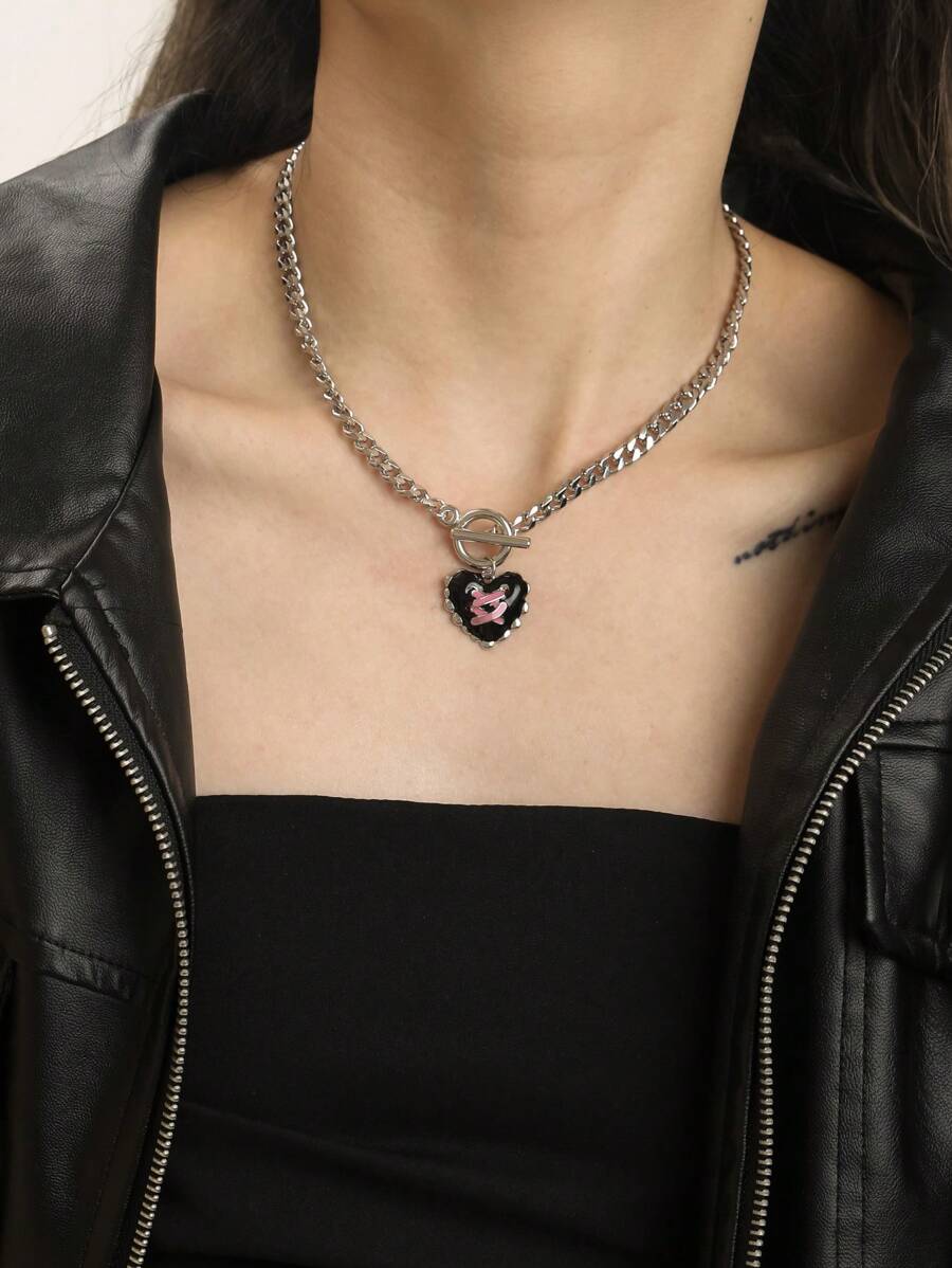 Grunge Punk 1 pieza Collar gargantilla estilo punk con corazón con cadena & corchete detalle