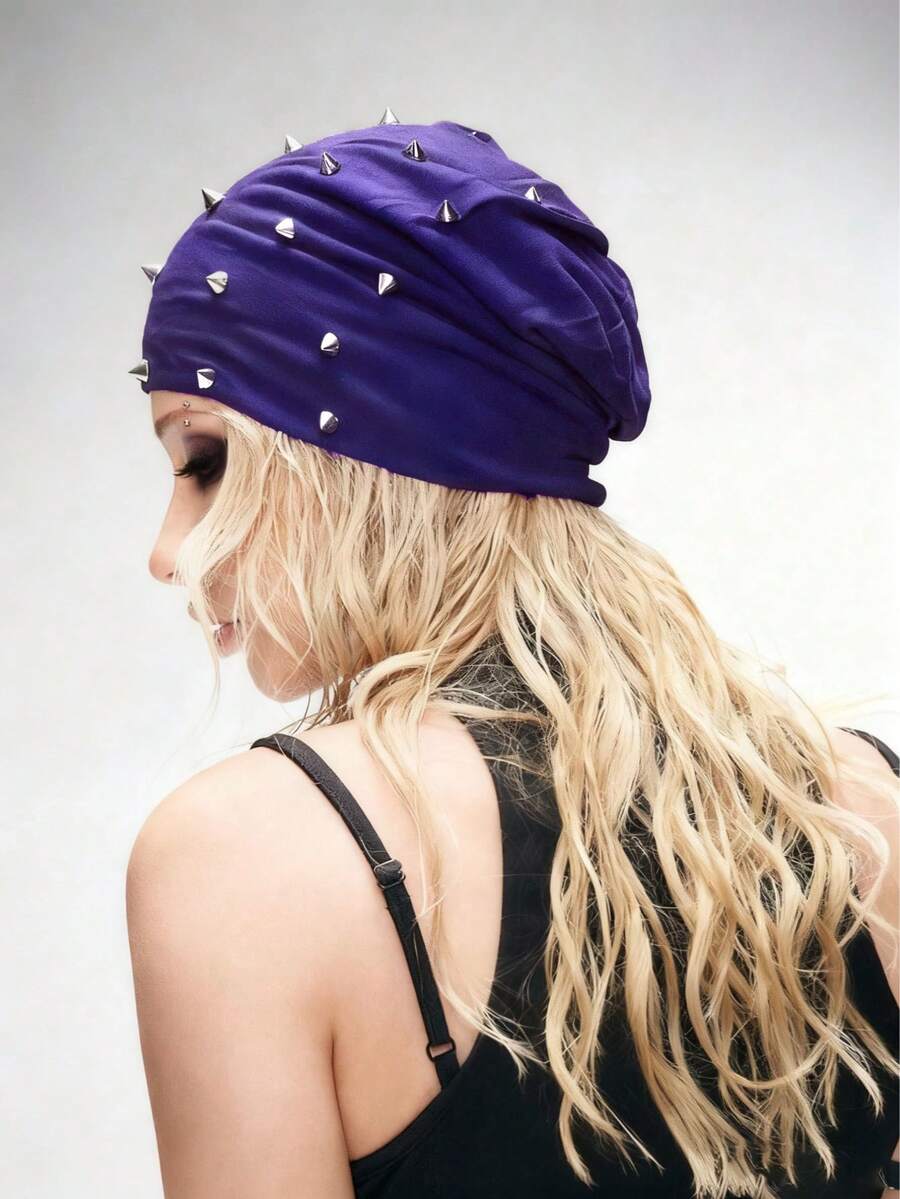 Grunge Punk 1 pieza Gorro estilo punk ligero decorado con remaches, gorro plegable sólido negro vintage de alta calidad de la era Y2K, uso diario de moda para todas las estaciones
