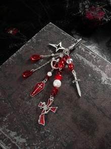 Grunge Punk 1pc Sweet & Cute Star, Strawberry, Bowknot & Tassel Pendant Keychain Suitable For Bags, Mobile Phones, Friends As Gifts Valentines