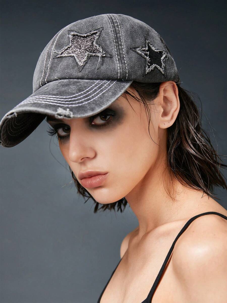 Grunge Punk Mujer 1 pieza Gorra de béisbol con estrella desgarro bajo crudo casual