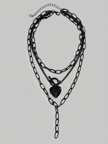 Grunge Punk 1 pieza Collar con colgante minimalista de corazón abierto de varias capas para mujer