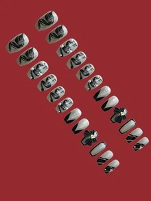 Grunge Punk 24 piezas lazo con diseño Uña postiza & 1 hoja uña cinta