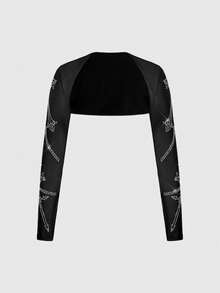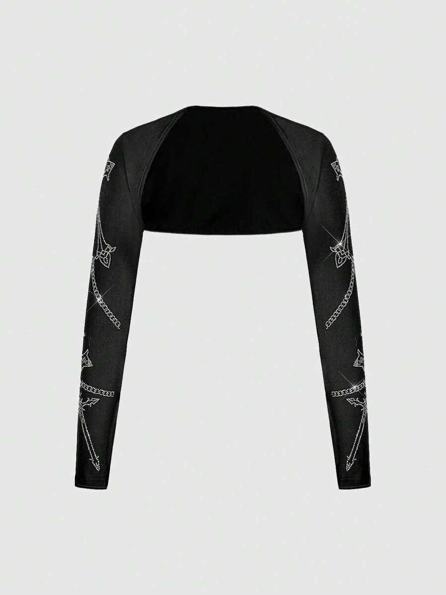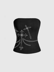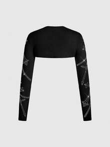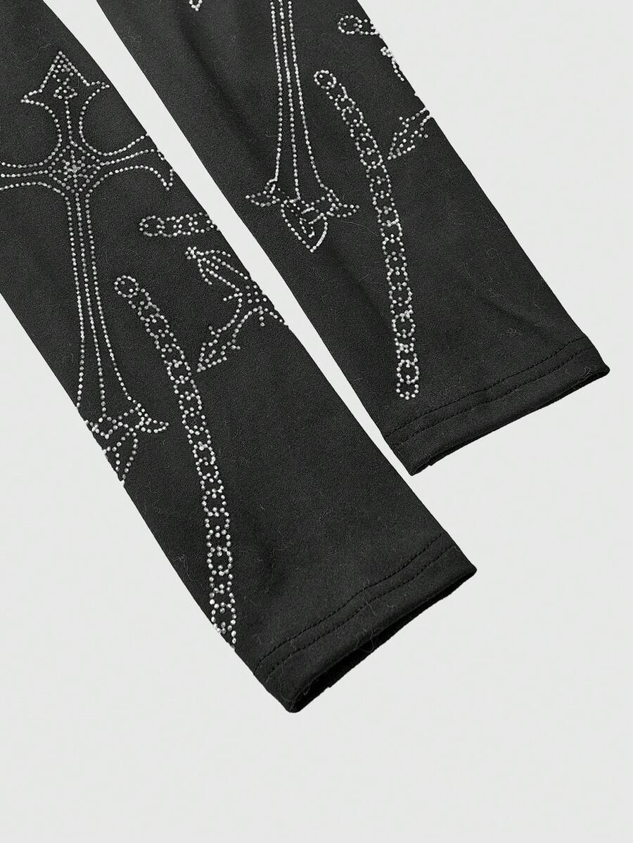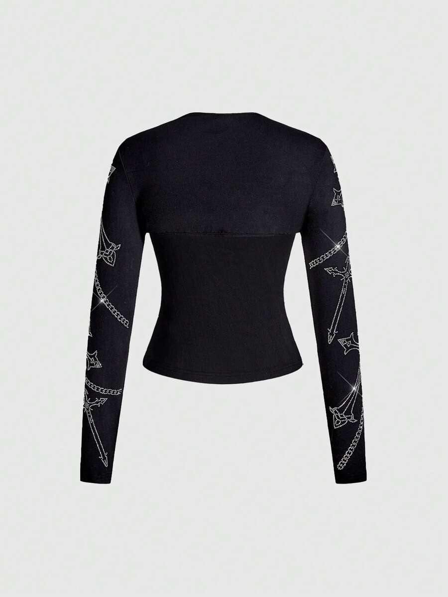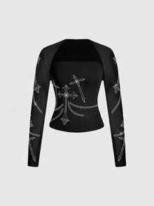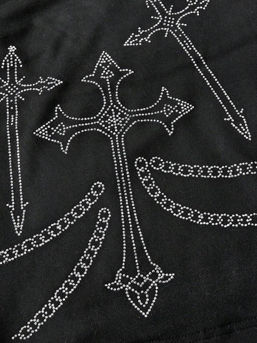 Grunge Punk Set de camiseta y chaleco con decoración de cruz gótica con rhinestones