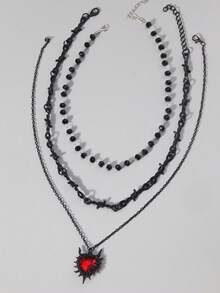 Grunge Punk Set de 3 collares para mujer con cuentas en forma de corazón de cristal y espinas en estilo gótico oscuro