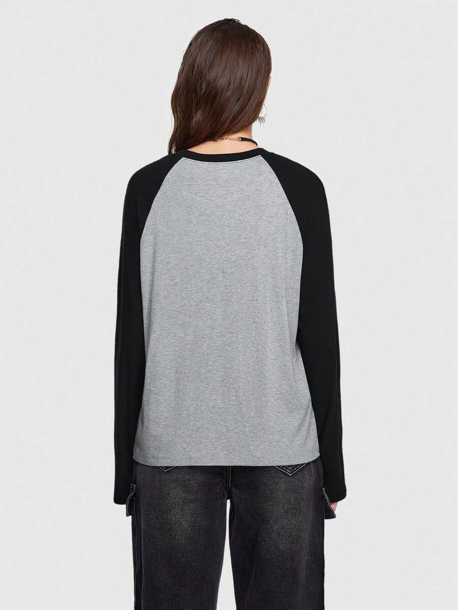 Grunge Punk Camiseta cruzado con estampado de manga raglán