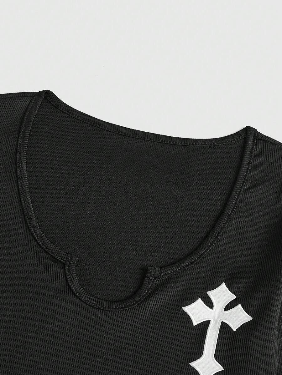 Grunge Punk Vestido con bordado patrón cruzado de cuello de muesca