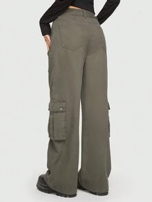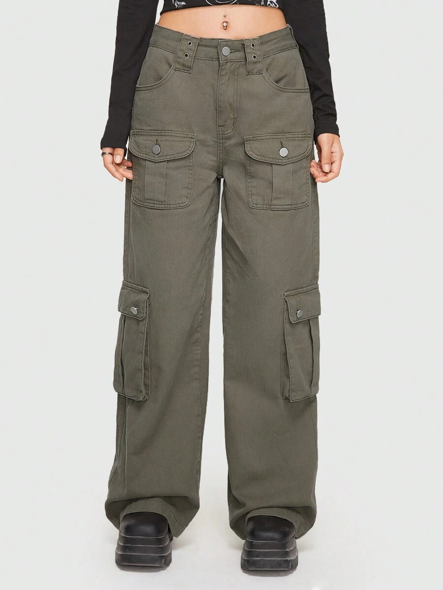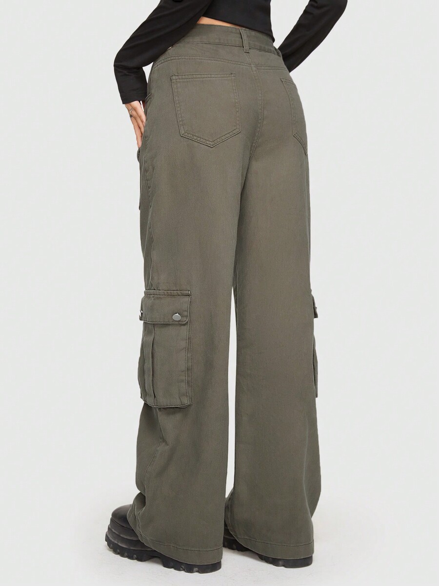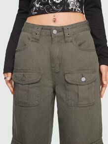 Grunge Punk Jeans cargo con bolsillo con solapa