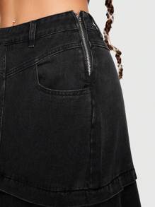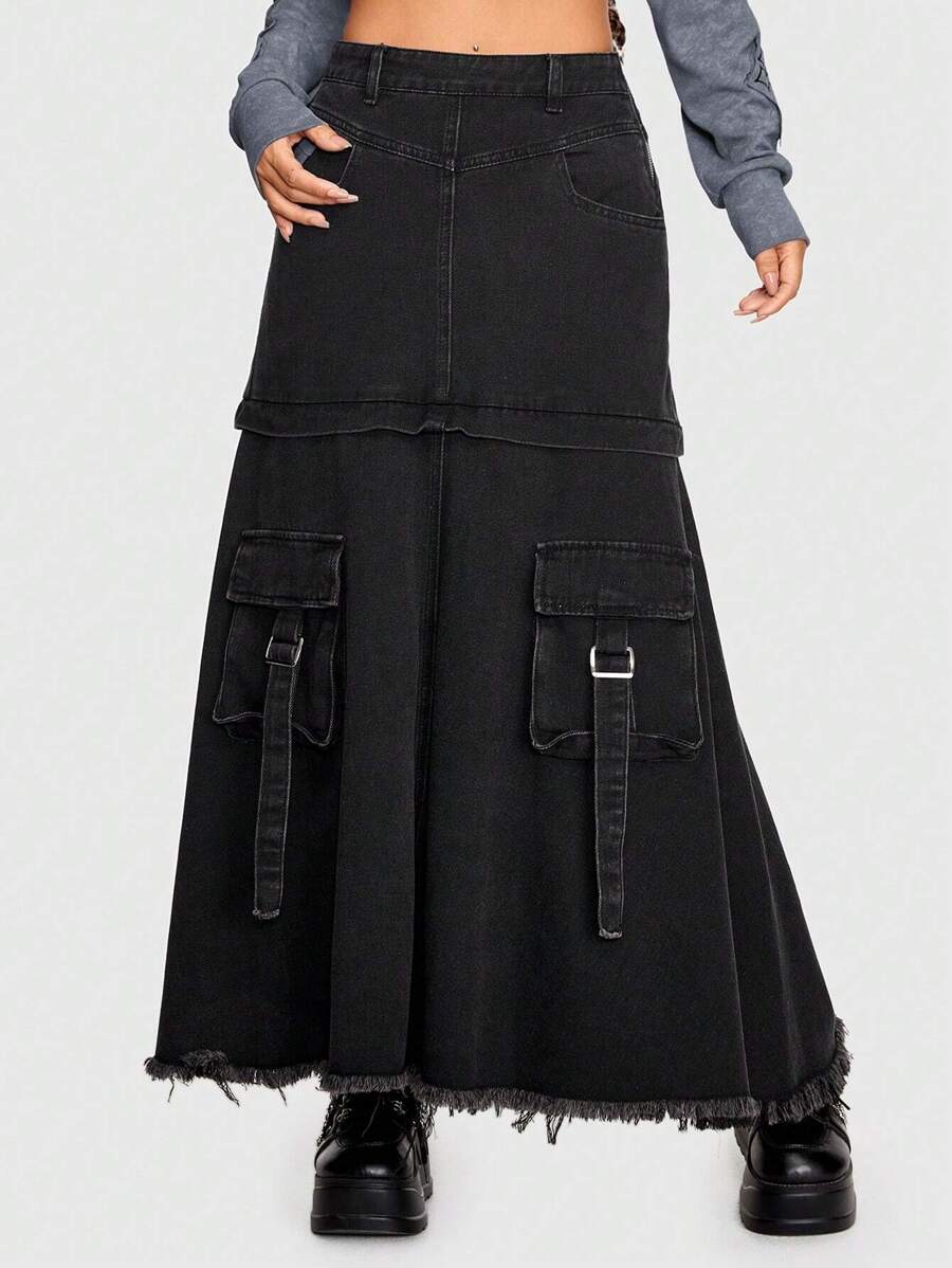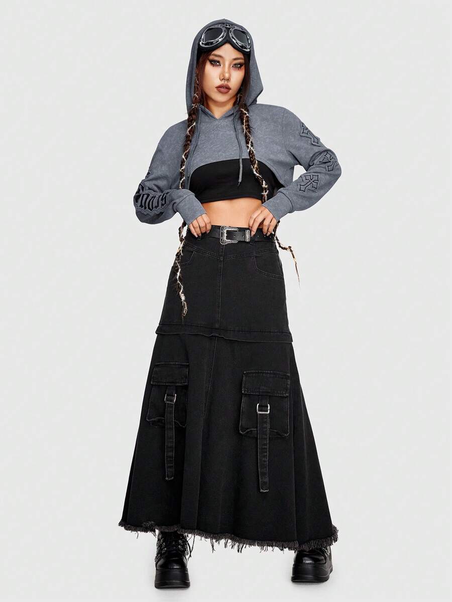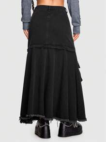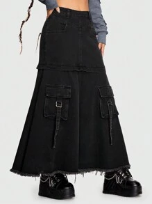 Grunge Punk Falda en mezclilla con bolsillo con solapa bajo crudo