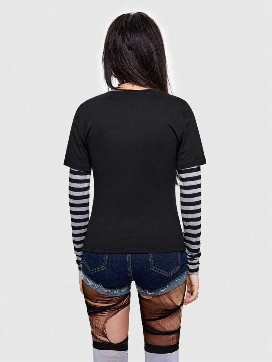 Grunge Punk Camiseta guitarra & con estampado de letra manga de rayas