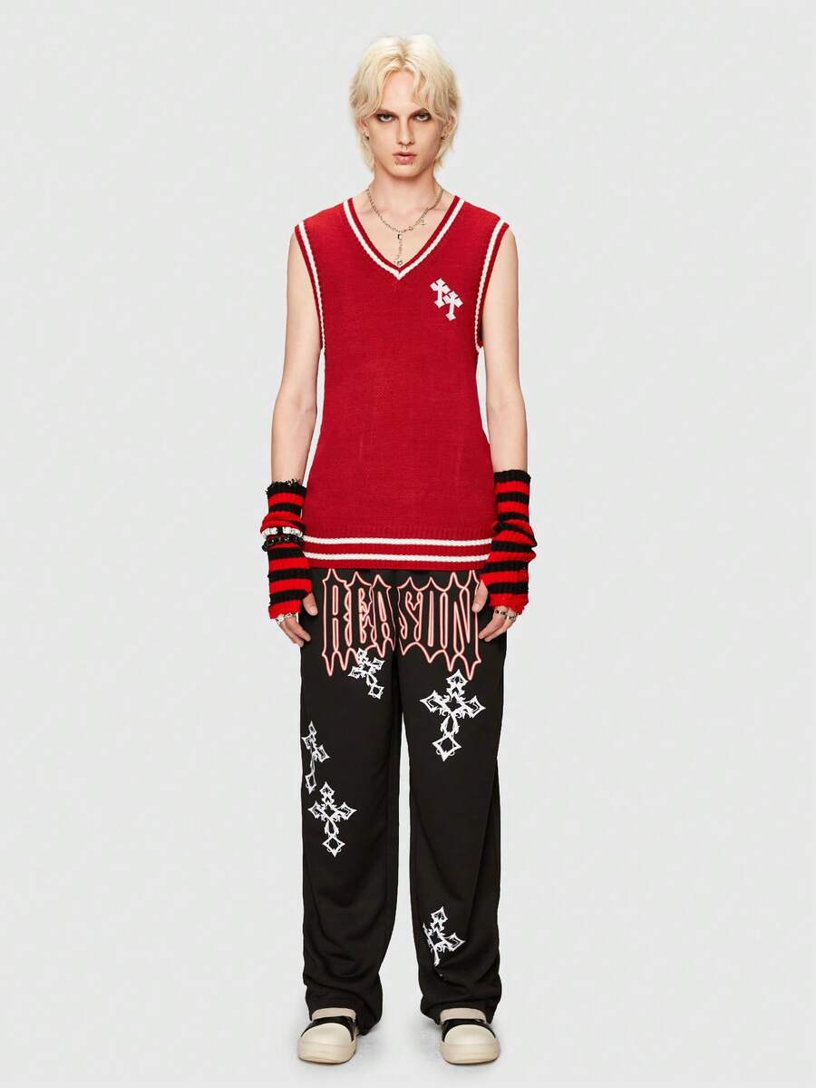 Grunge Punk Hombres 1 pieza Chaleco de punto patrón cruzado ribete de rayas