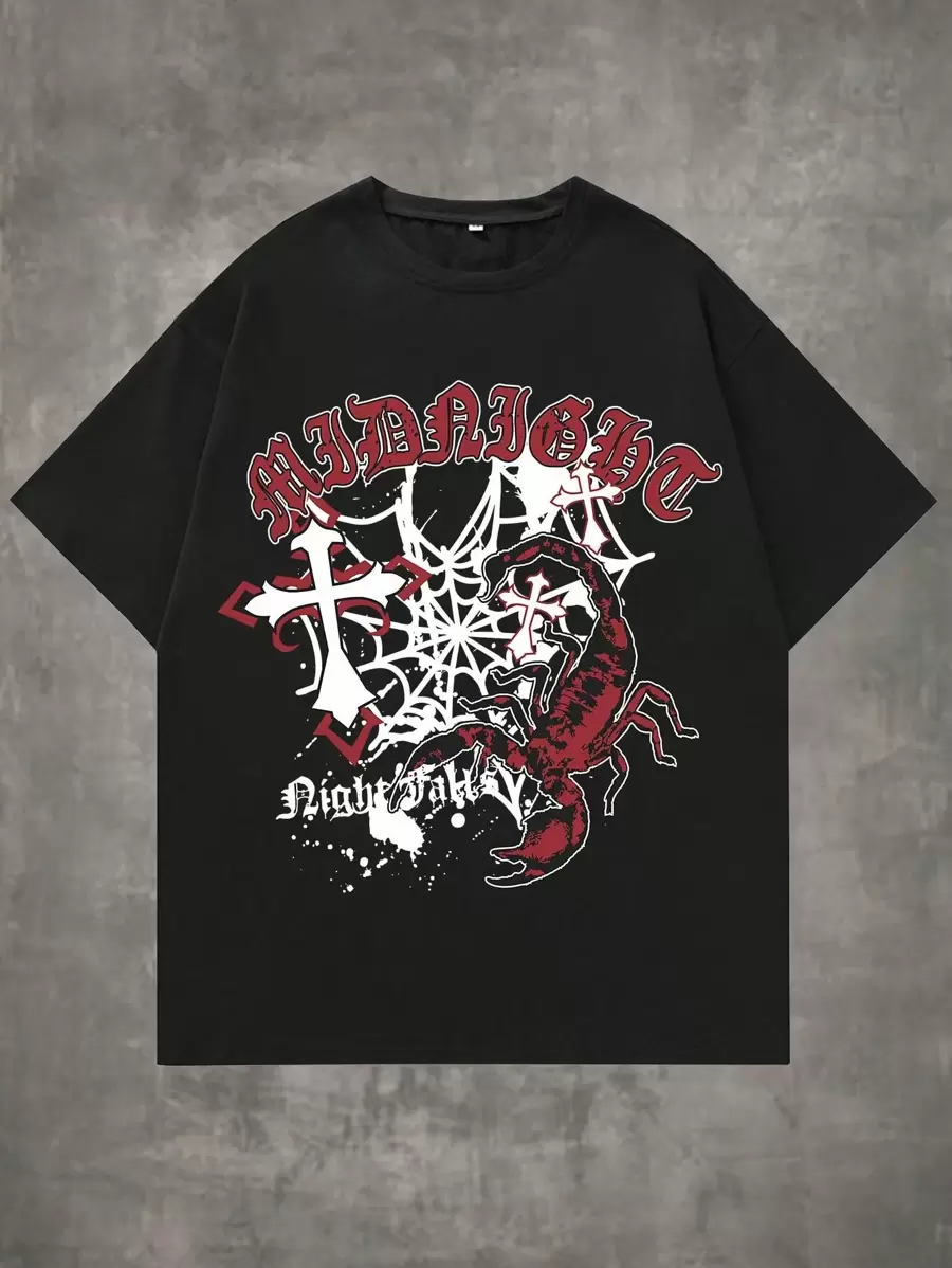 Goth Playera Gráfica Con Letras Cruzadas Para Hombre