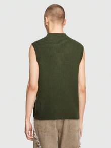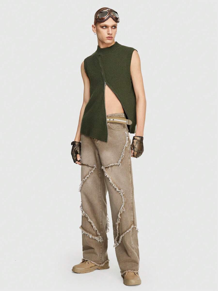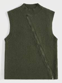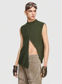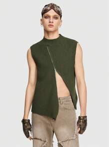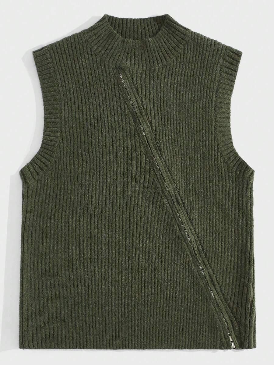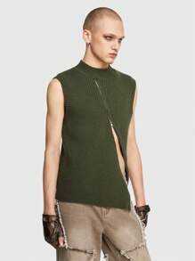 Grunge Punk Hombres Chaleco de punto tejido de canalé con diseño de cremallera