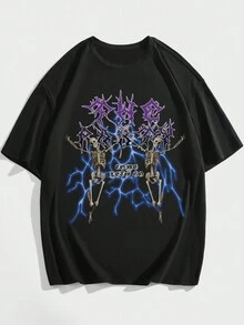 Grunge Punk Hombres Camiseta esqueleto & con estampado de letra