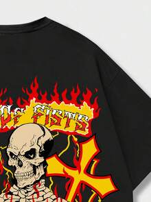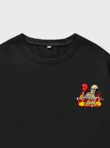 Grunge Punk Camiseta gráfica con calavera y letra para hombres, escolar