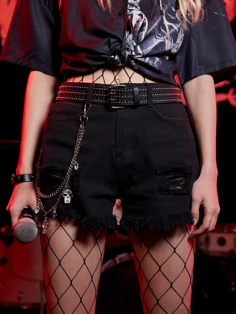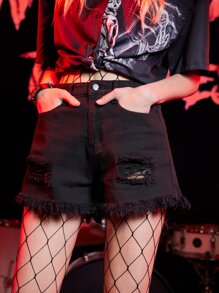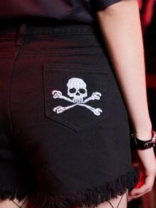 Grunge Punk Shorts en mezclilla de cráneo con bordado roto