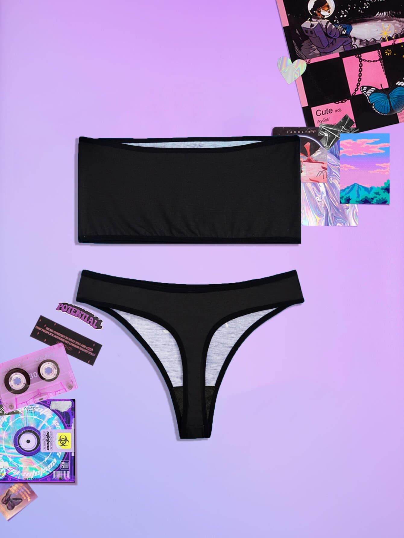 Grunge Punk Set de lencería bandeau con estampado de letra y corazón