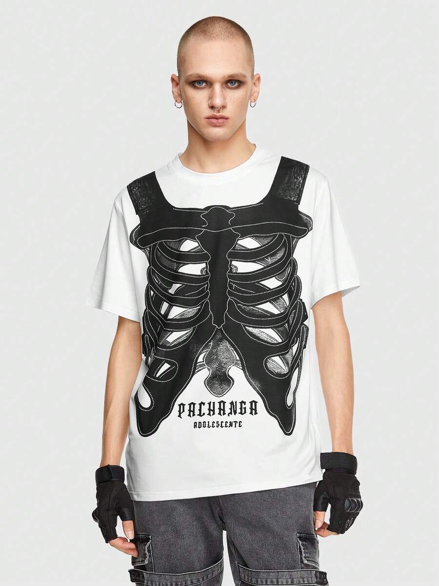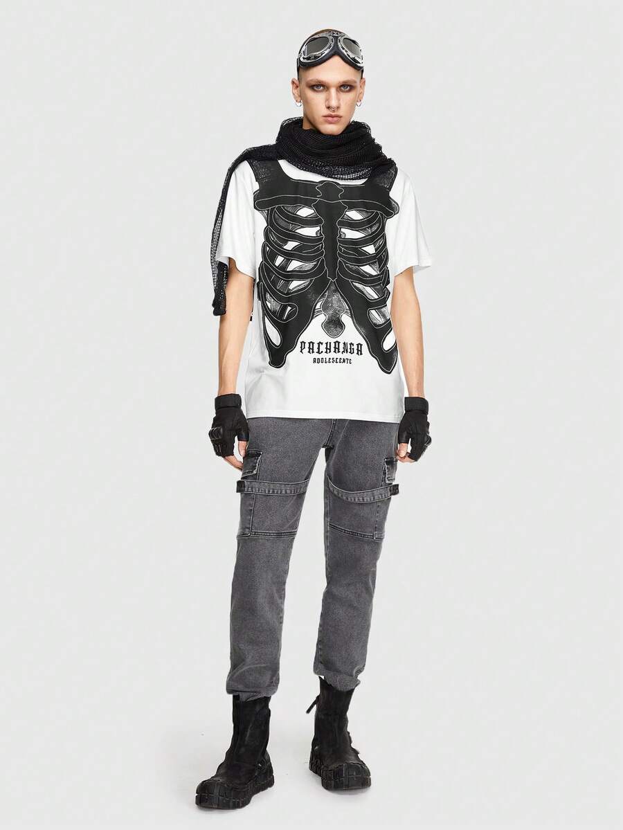 Grunge Punk Hombres Camiseta estampado de esqueleto