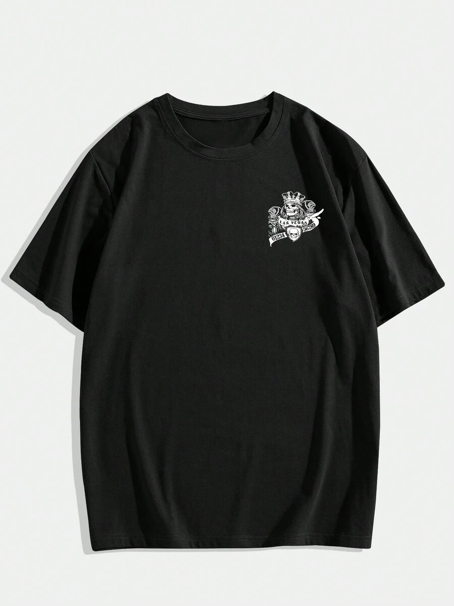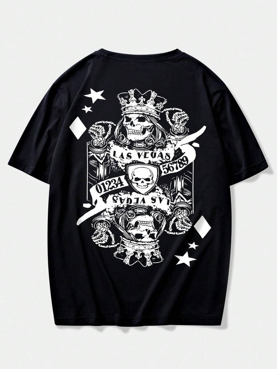 Grunge Punk Hombres Camiseta con estampado de cráneo y letra