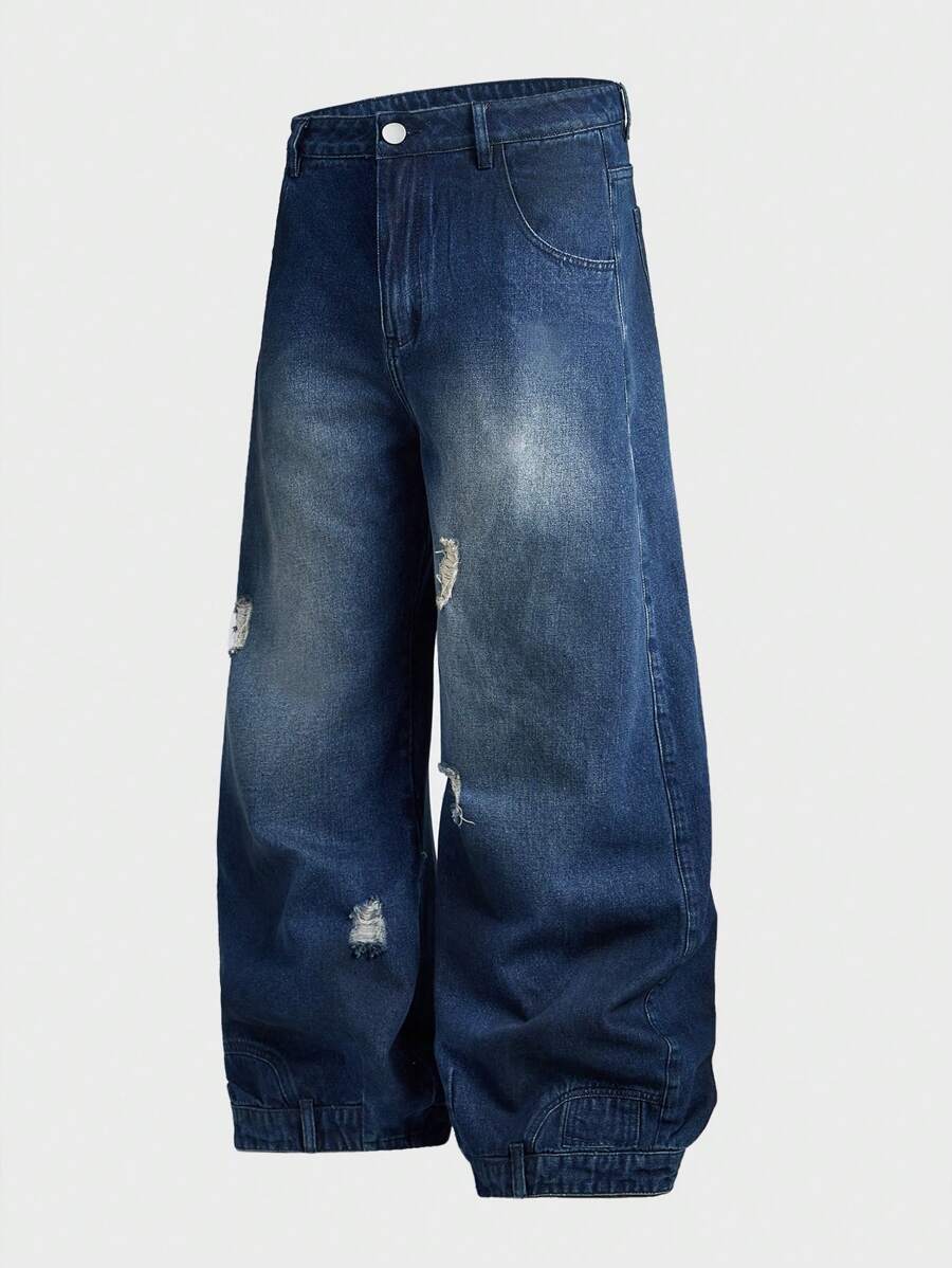 Grunge Punk Jeans anchos casuales desgastados lavados para hombre