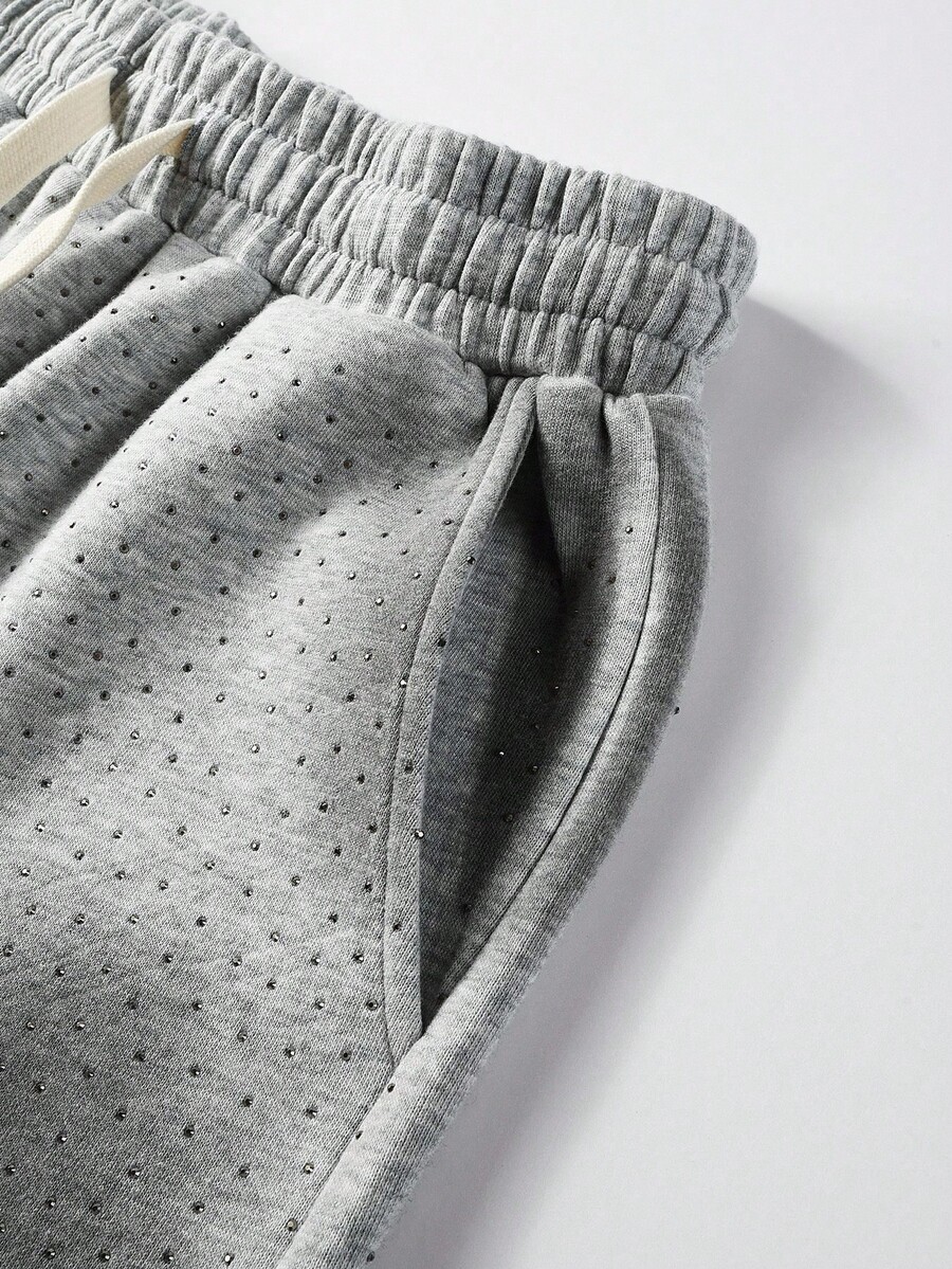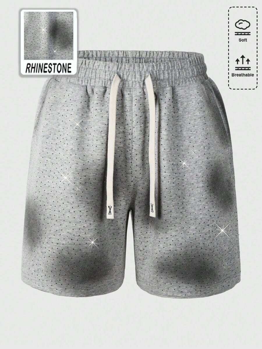 Grunge Punk Shorts holgados con efecto desgastado y brillos para hombres