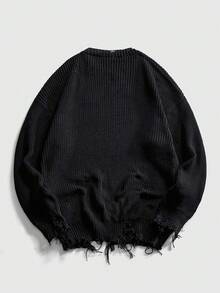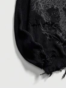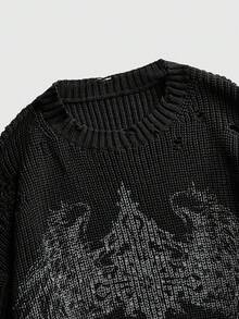 Grunge Punk Suéter de punto con estampado apocalíptico desgastado para hombre