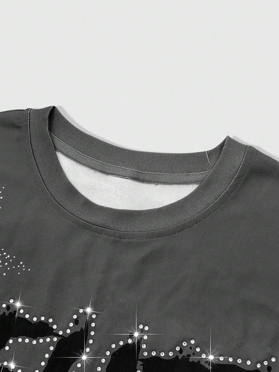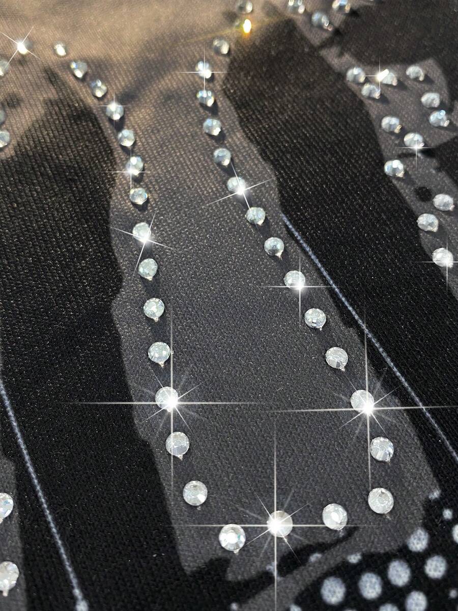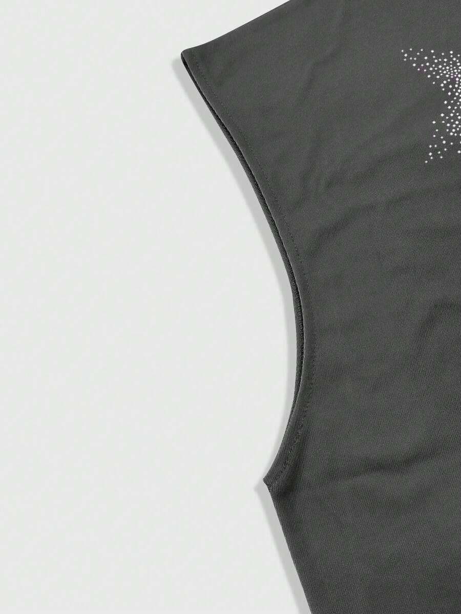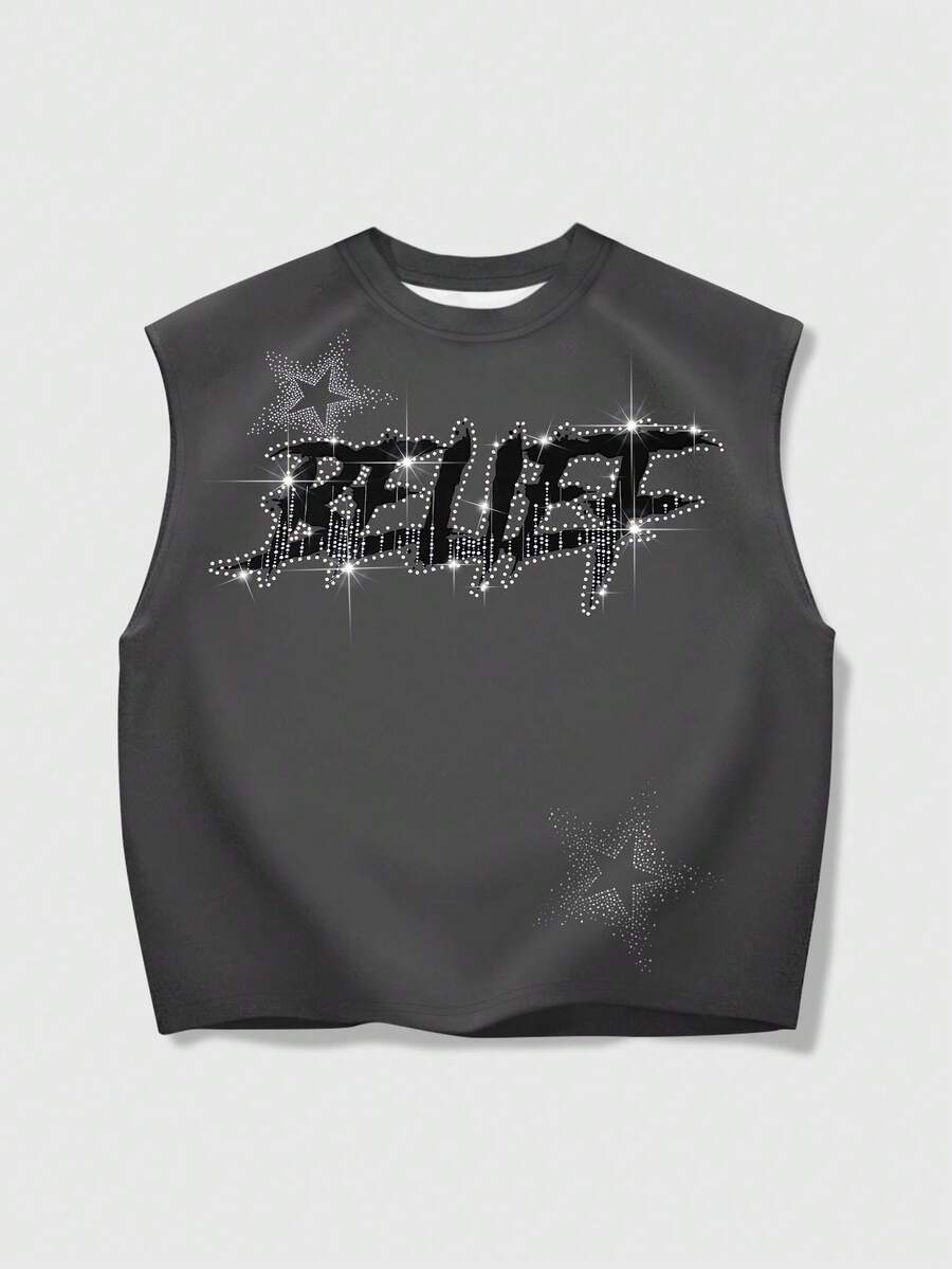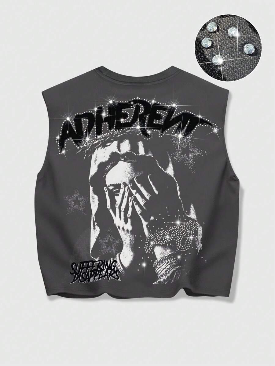 Grunge Punk Camiseta de tirantes holgada con estampado de Virgen María y adornos de strass, estilo callejero casual y fashionable para hombre en verano