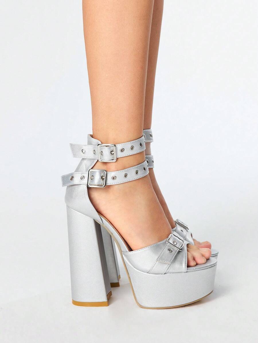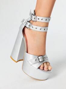 Grunge Punk Sandalias con plataforma impermeable, tacón cuadrado alto, puntera redonda, correa con hebilla, sexy y de moda para mujeres para uso en exteriores, color blanco