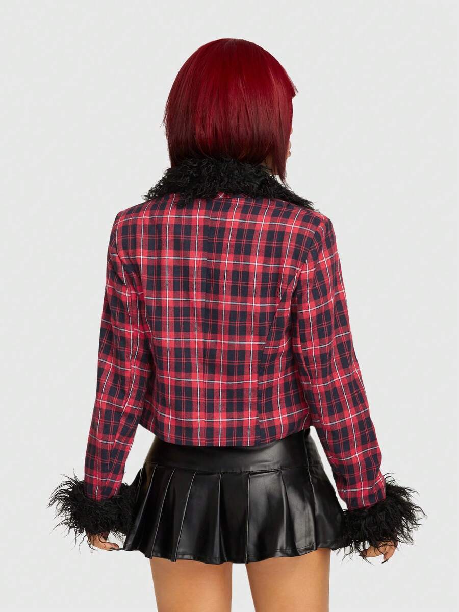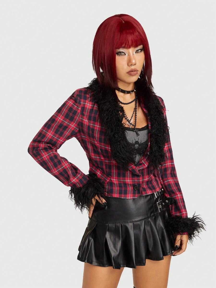 Grunge Punk Chaqueta De Mujer A Cuadros Con Cuello Chal