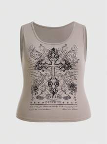 Grunge Punk Talla grande Top tank cruzado & con estampado de slogan