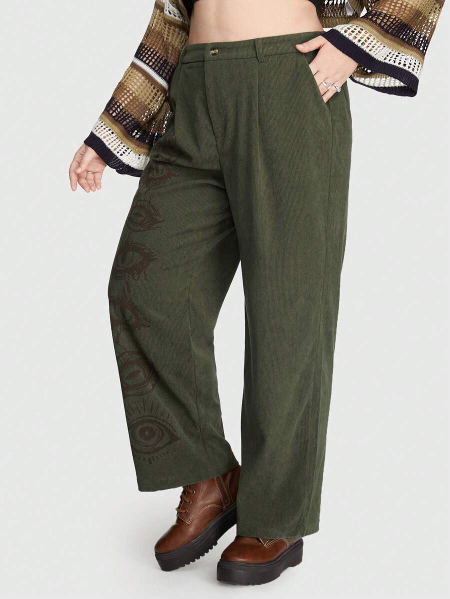 Grunge Punk Pantalones De Tamaño Grande Con Estampado De Ojos De Dibujos Animados Y Pierna Recta