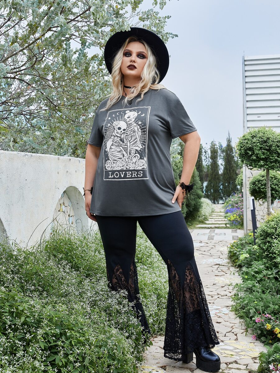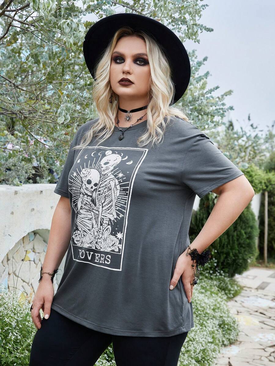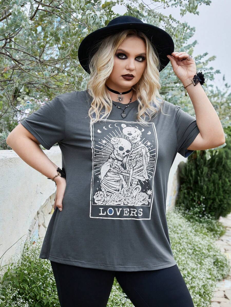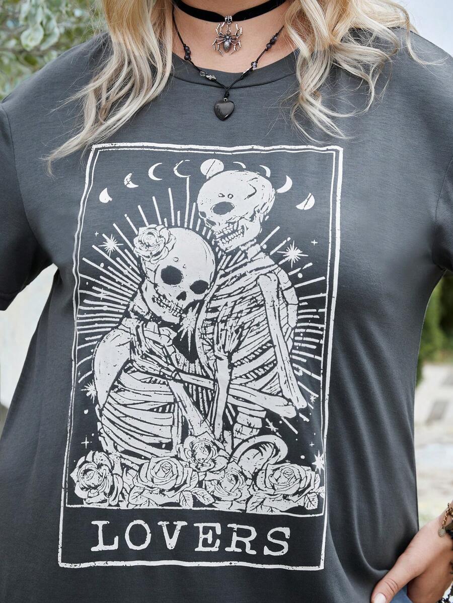 Goth Camiseta Gráfica De Calavera Y Letras En Talla Grande
