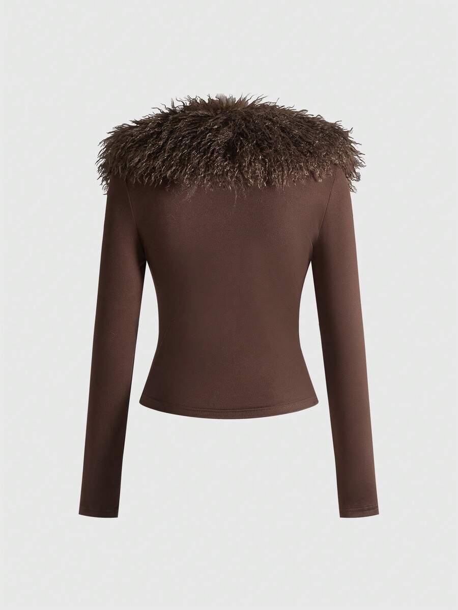Grunge Punk Top de manga larga con cuello alto y peludo en estilo retro Y2K