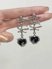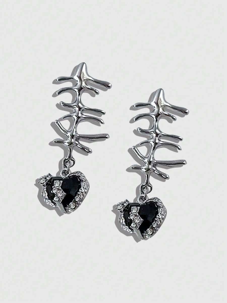 Grunge Punk Pendientes largos con diseño de diamante de imitación con corazón