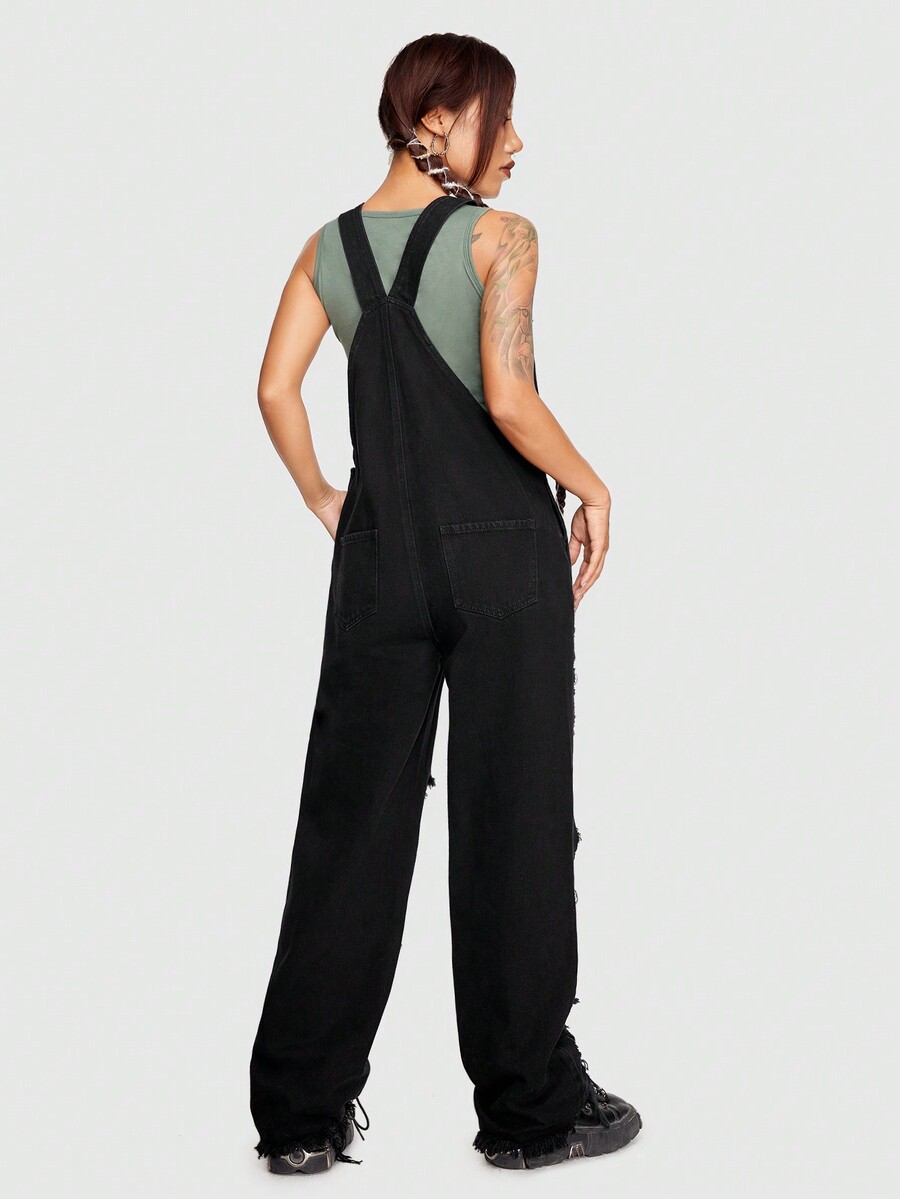 Grunge Punk Mono overol desgarro crudo sin top tank