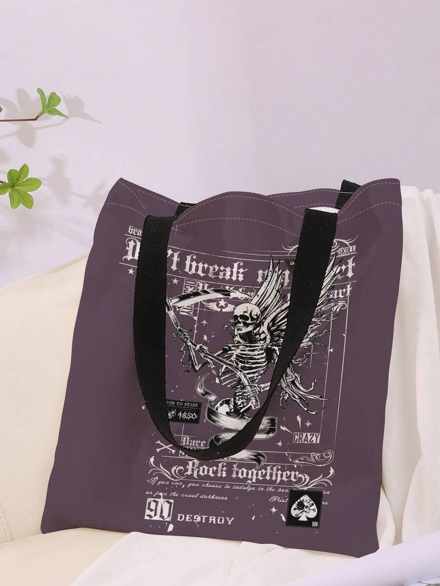 Grunge Punk Bolsa de compras esqueleto & con estampado de slogan