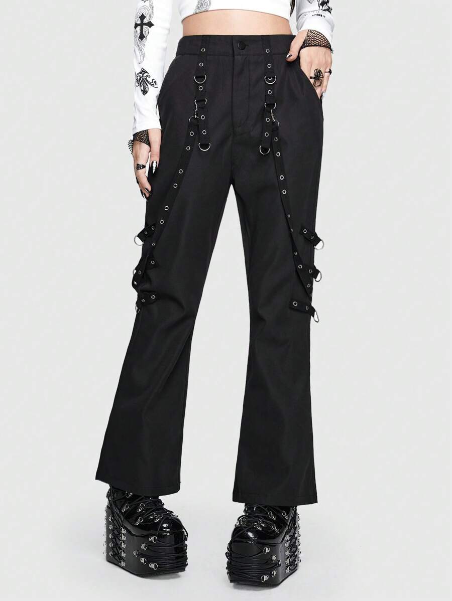 Grunge Punk Pantalones acampanados unicolor con ojal