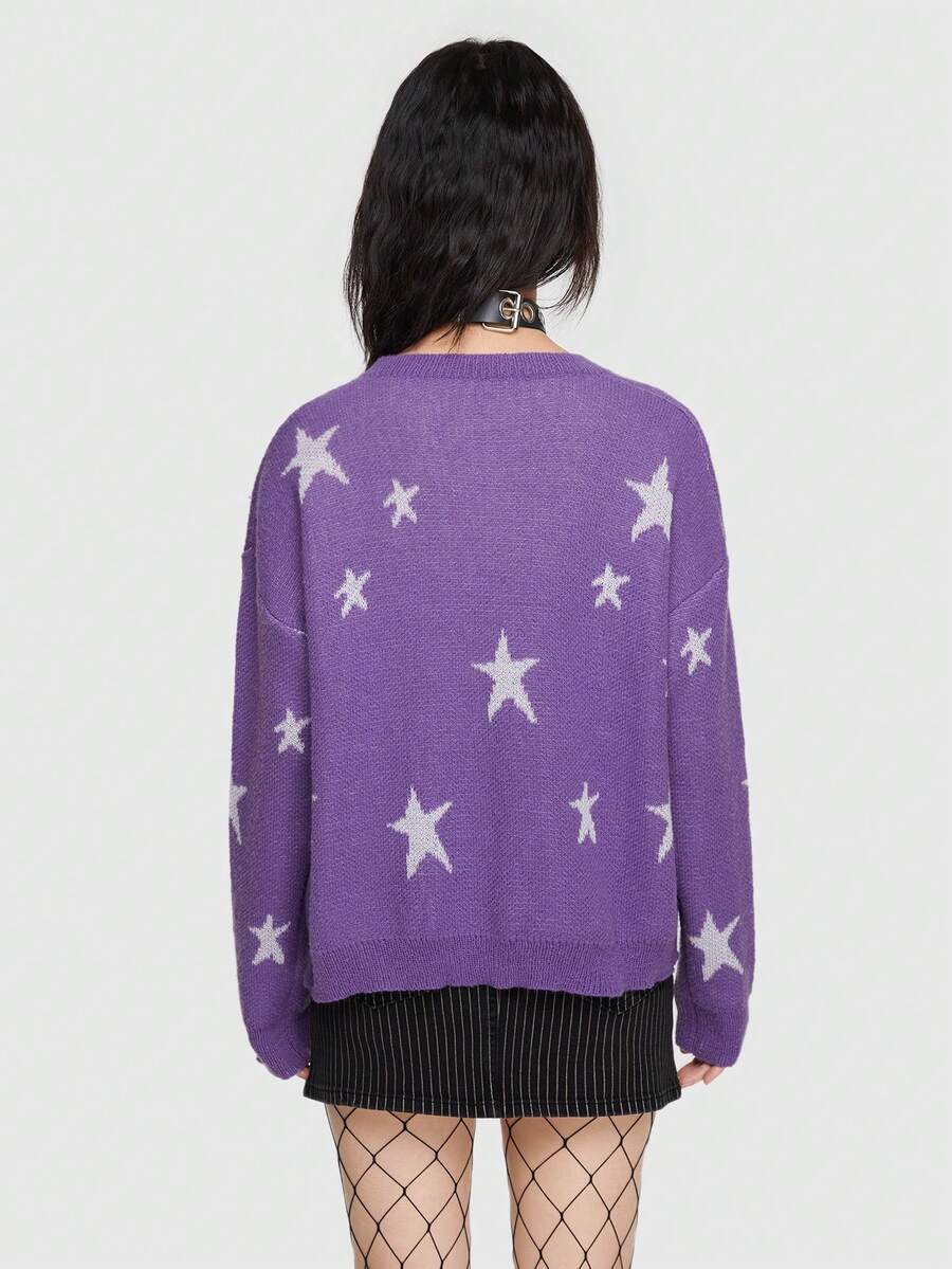 Grunge Punk Cárdigan con patrón de estrella de hombros caídos