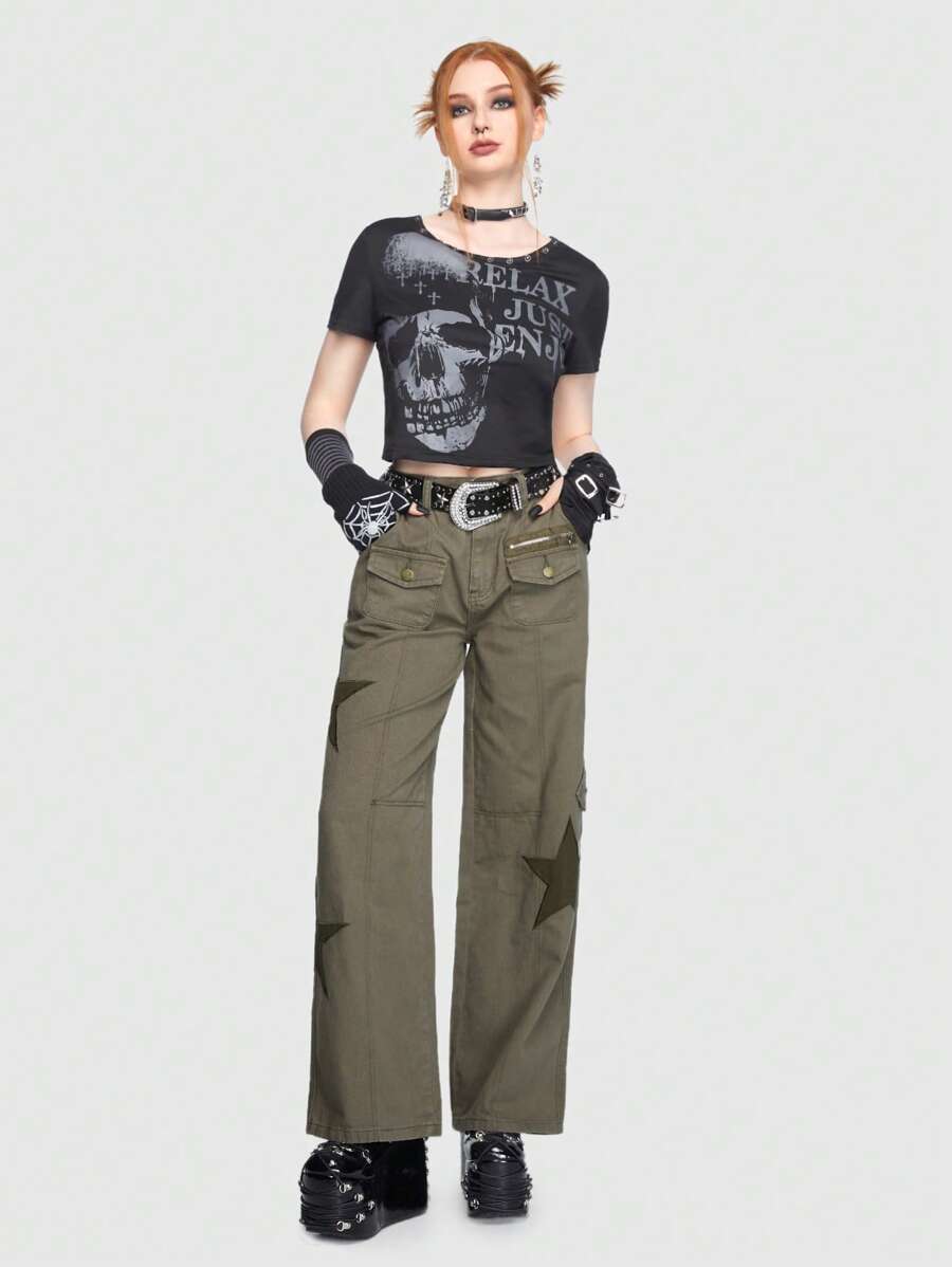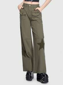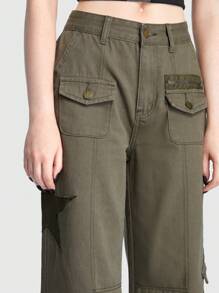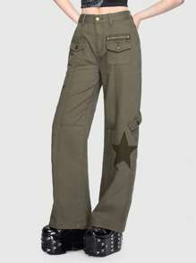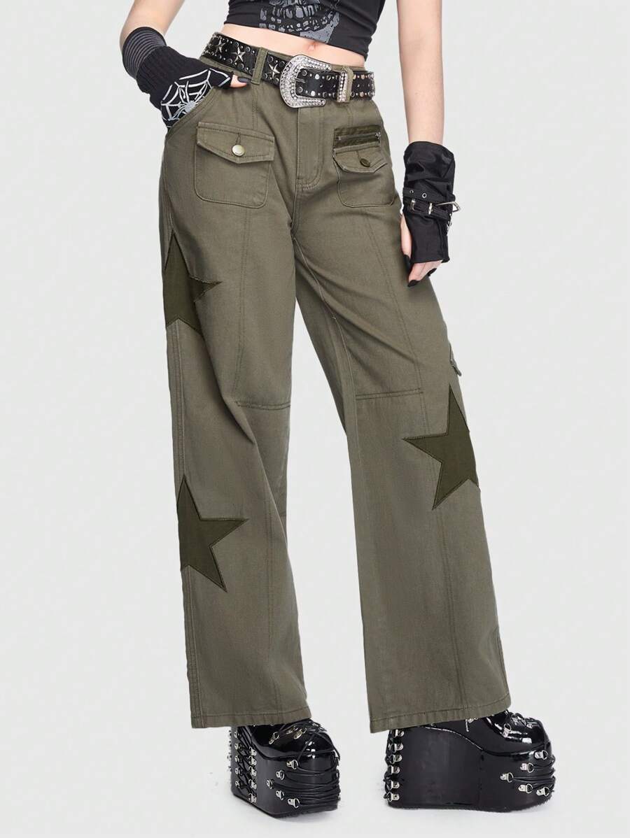 Grunge Punk Jeans cargo con estampado de estrella con bolsillo con solapa