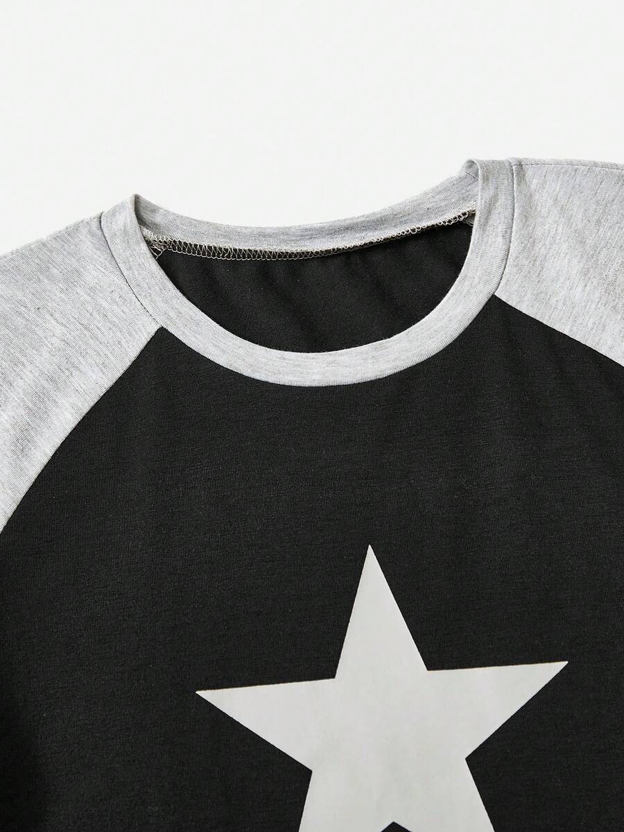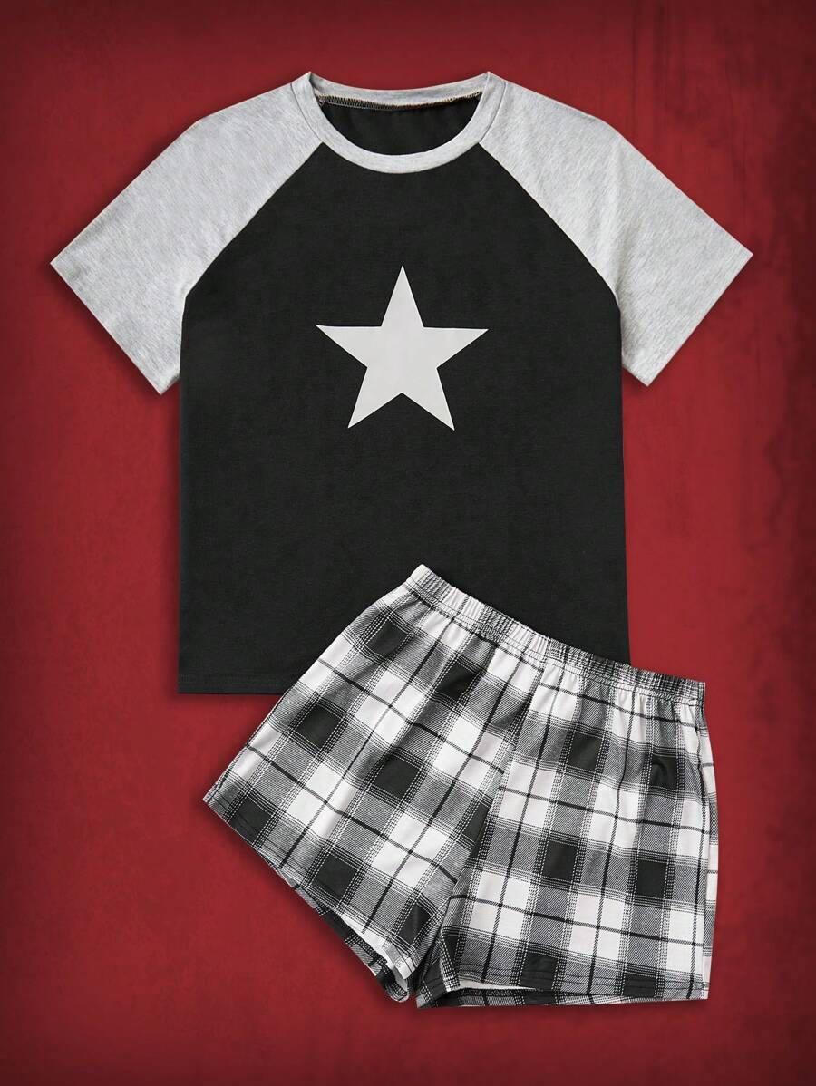 Grunge Punk con estampado de estrella de manga raglán Camiseta & de cuadros Shorts Conjunto de pijama