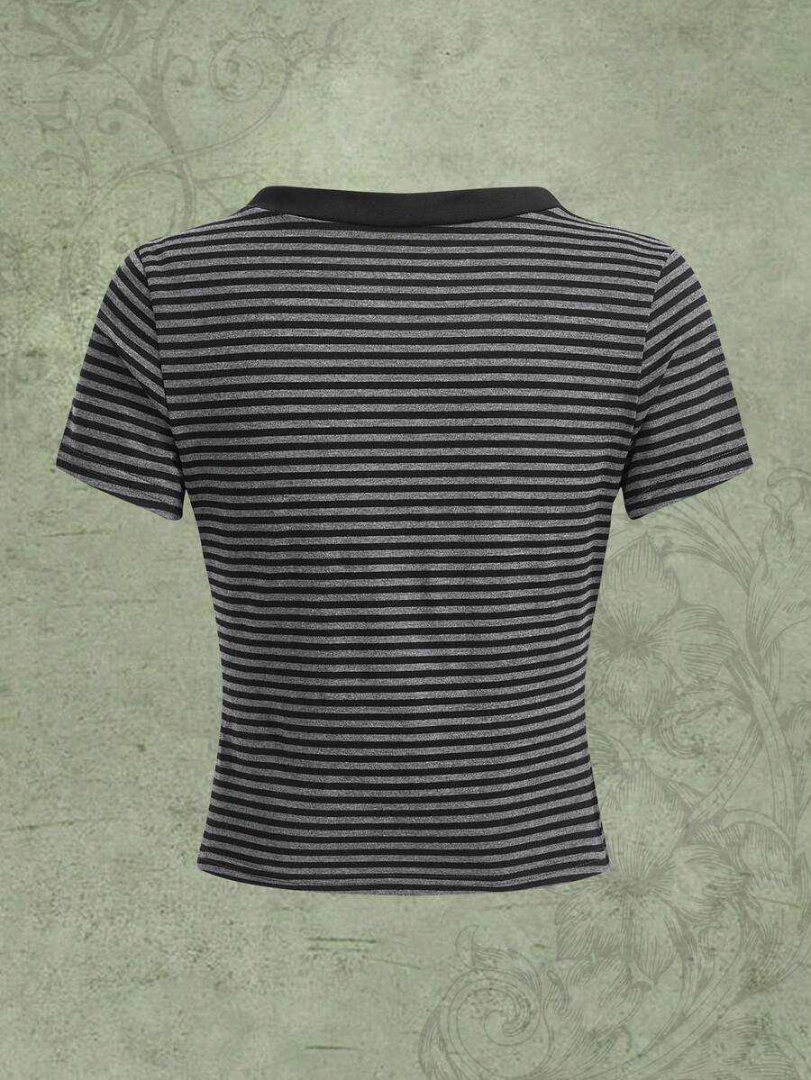 Grunge Punk Camiseta de rayas cruzado con cordón delantero