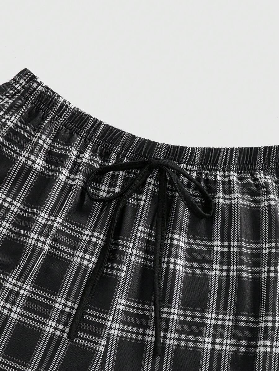 Grunge Punk Conjunto de pijama para mujer con estampado de estrella y cuadros, de manga corta