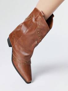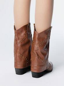 Grunge Punk Botas de mujer con remaches en el fuste, botas cortas para uso diario, estilo punk oscuro, campus, gótico con tacones gruesos, botas altas de rodilla con remaches al estilo occidental, botas de tobillo y botas cortas